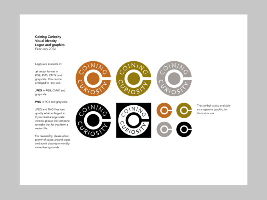 I asked for examples of recent materials and read them. I produced a new, simpler, more versatile mark combining a coin and a search icon to make a C. I found fonts rooted in coins and in modern readability. I matched colours to actual coins.